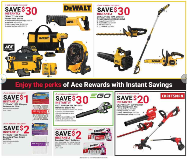 The AceHardware weekly ad includes both online offers and in-store promotions, depending on your location.